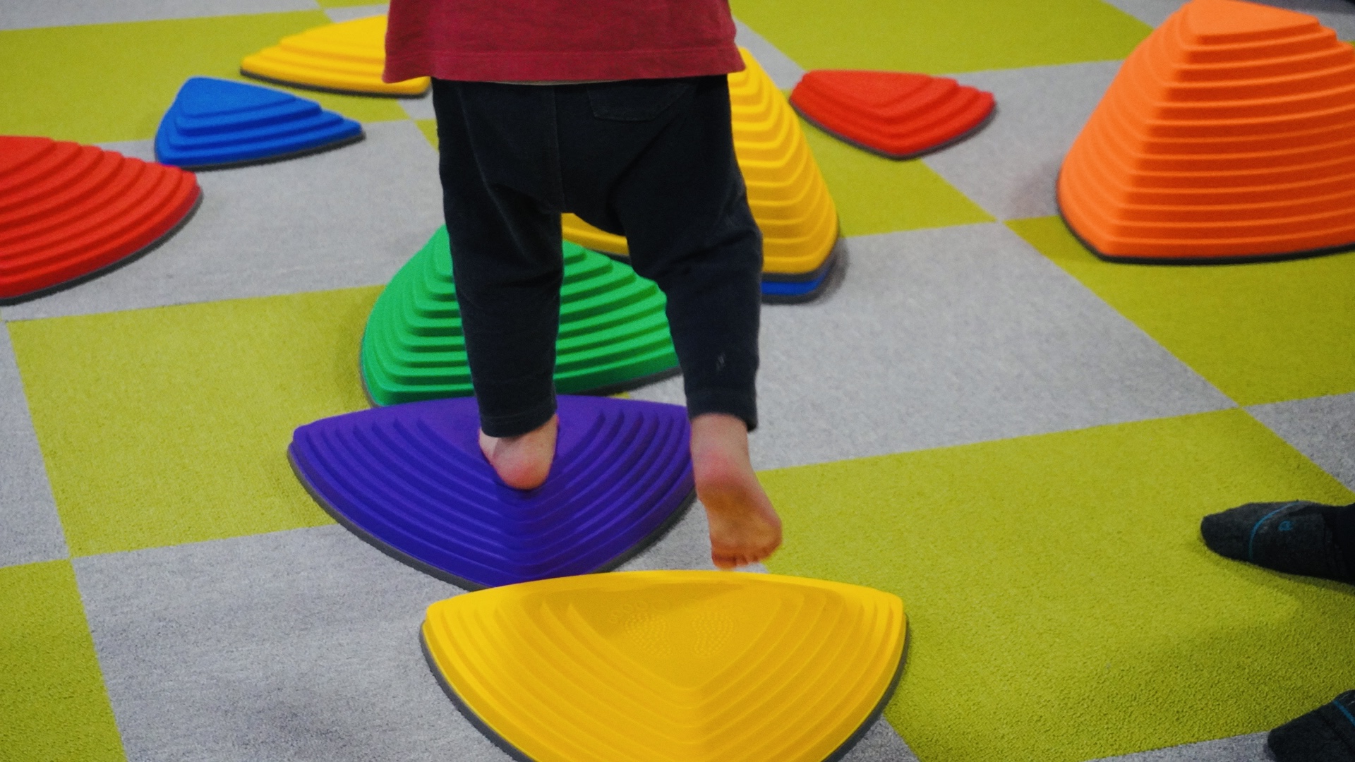 粗大運動を通して、体のバランスをとる感覚(前庭覚)、自分の体の位置や動きを感じる感覚(固有受容覚)、触れる感覚(触覚)などをバランス良く刺激。